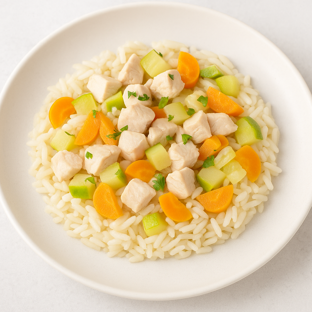 Gut verträgliche Zutaten: Basmatireis, Zucchini, Hähnchenfleisch – alles mild und leicht verdaulich