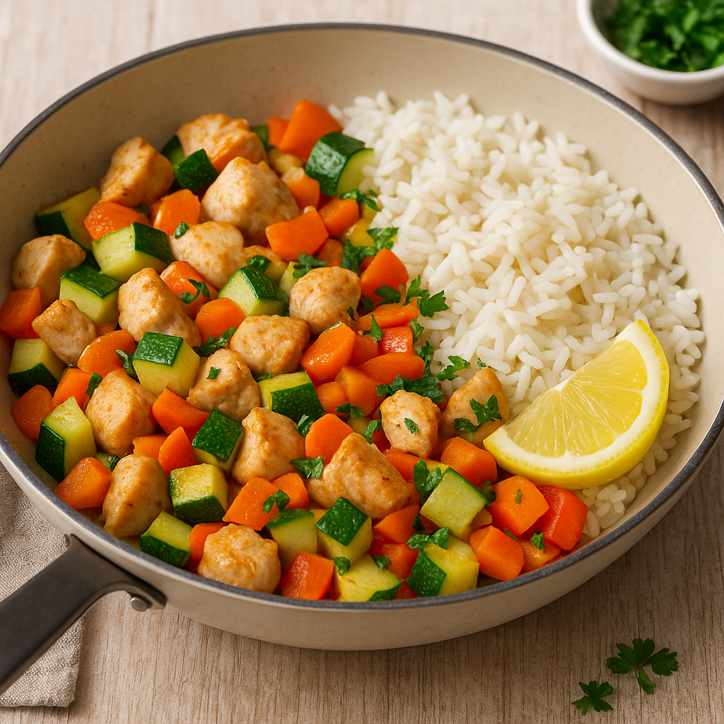 Diese Hähnchen-Gemüse-Pfanne beweist: Auch bei Glutenunverträglichkeit und Nierenerkrankung kann man sich abwechslungsreich und lecker ernähren. Frische Zutaten, schnelle Zubereitung und sanfte Würze machen das Gericht zu einem perfekten Alltagsbegleiter – leicht, gesund und einfach gut.