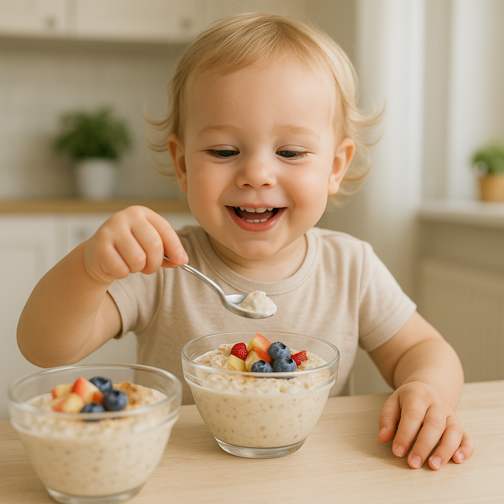 Diese Apfel-Quark-Creme mit Haferflocken ist dafür ideal. Sie nutzt die natürliche Süße von Obst, enthält wertvolles Eiweiß und sättigende Ballaststoffe – ganz ohne zugesetzten Zucker. Die Kombination aus cremigem Quark, mildem Apfel und feinen Haferflocken sorgt für einen sanften Geschmack, der kleinen Kindern schmeckt und den Blutzucker stabil hält.