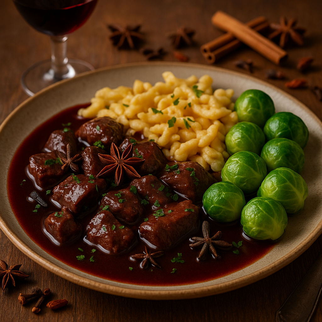 Dieses herzhafte Wildragout mit aromatischer Glühweinjus bringt festliche Stimmung in deine Küche. Der Duft von Rotwein, Zimt, Wacholder und Nelken erinnert an Weihnachtsmärkte, während das zarte Wildfleisch in einer kräftigen Sauce langsam geschmort wird. Serviert mit Rotkohl, Spätzle oder Kartoffelknödeln wird daraus ein echtes Festtagsgericht, das perfekt zu den kalten Monaten passt.