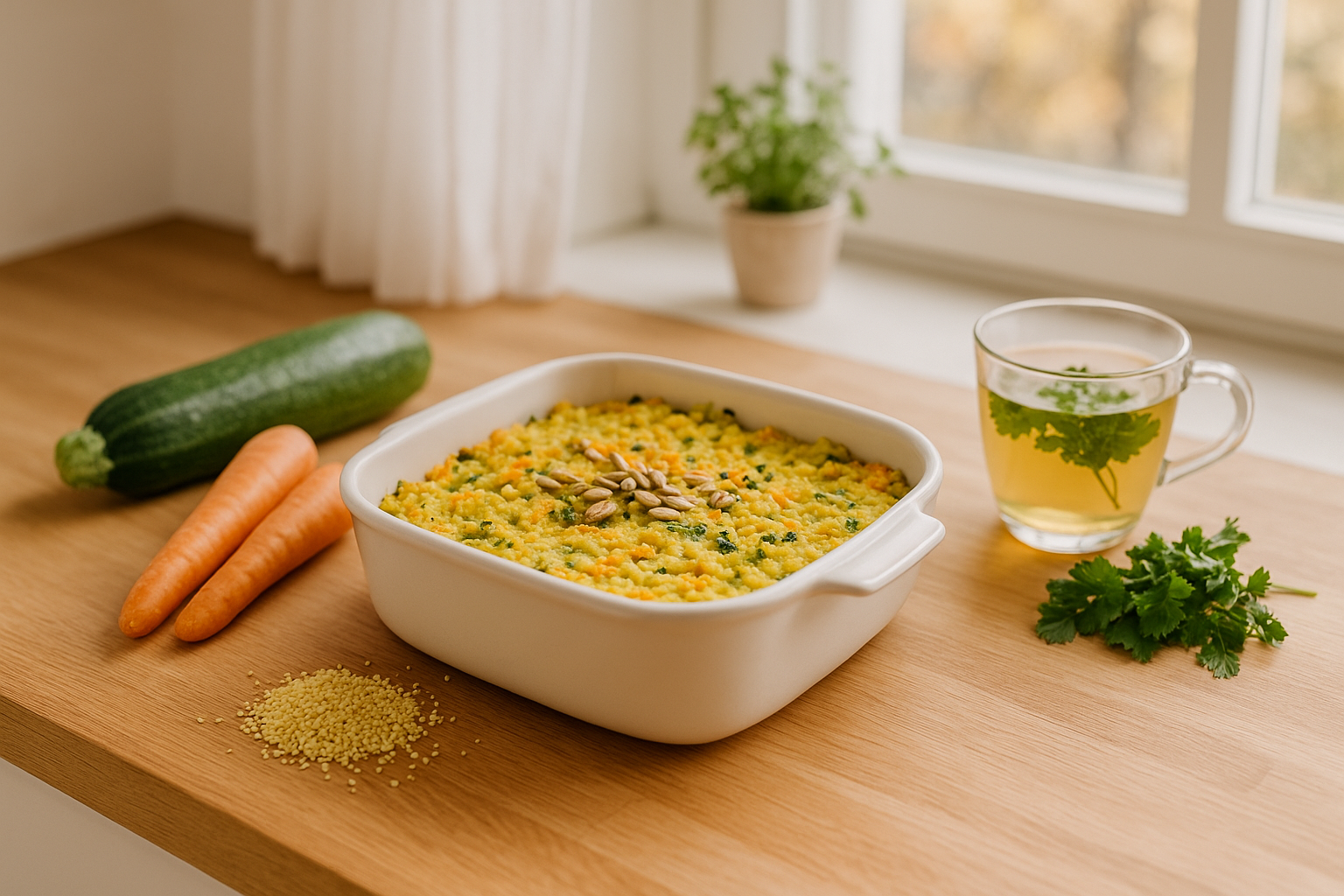 Ein sanfter Hirseauflauf für empfindliche Mägen – leicht, bekömmlich und dennoch nahrhaft. Ideal für Menschen mit Reizdarm oder sensibler Verdauung. Das Gericht kombiniert mild gewürztes Gemüse mit goldgelber Hirse zu einer warmen, magenfreundlichen Mahlzeit, die satt macht, ohne zu belasten.