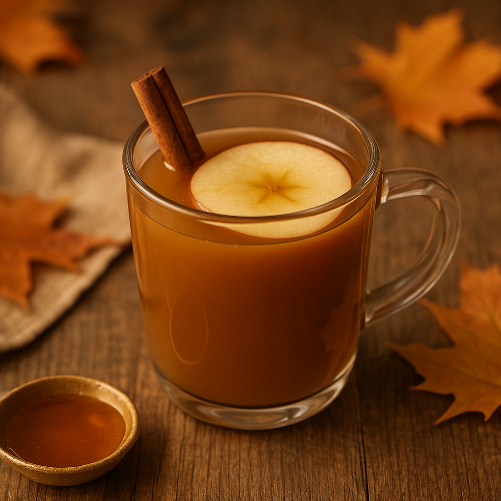 Wenn draußen der Wind weht und die Blätter tanzen, wärmt dieser Apfel-Zimt-Drink von innen. Frischer Apfelsaft, milde Vanille und ein Hauch Zimt verbinden sich zu einem sanften Herbstduft im Glas. Mit einem Klecks Honig wird daraus ein natürlich süßer, wohltuender Begleiter – ideal zum Entspannen oder als kleine Stärkung am Nachmittag.