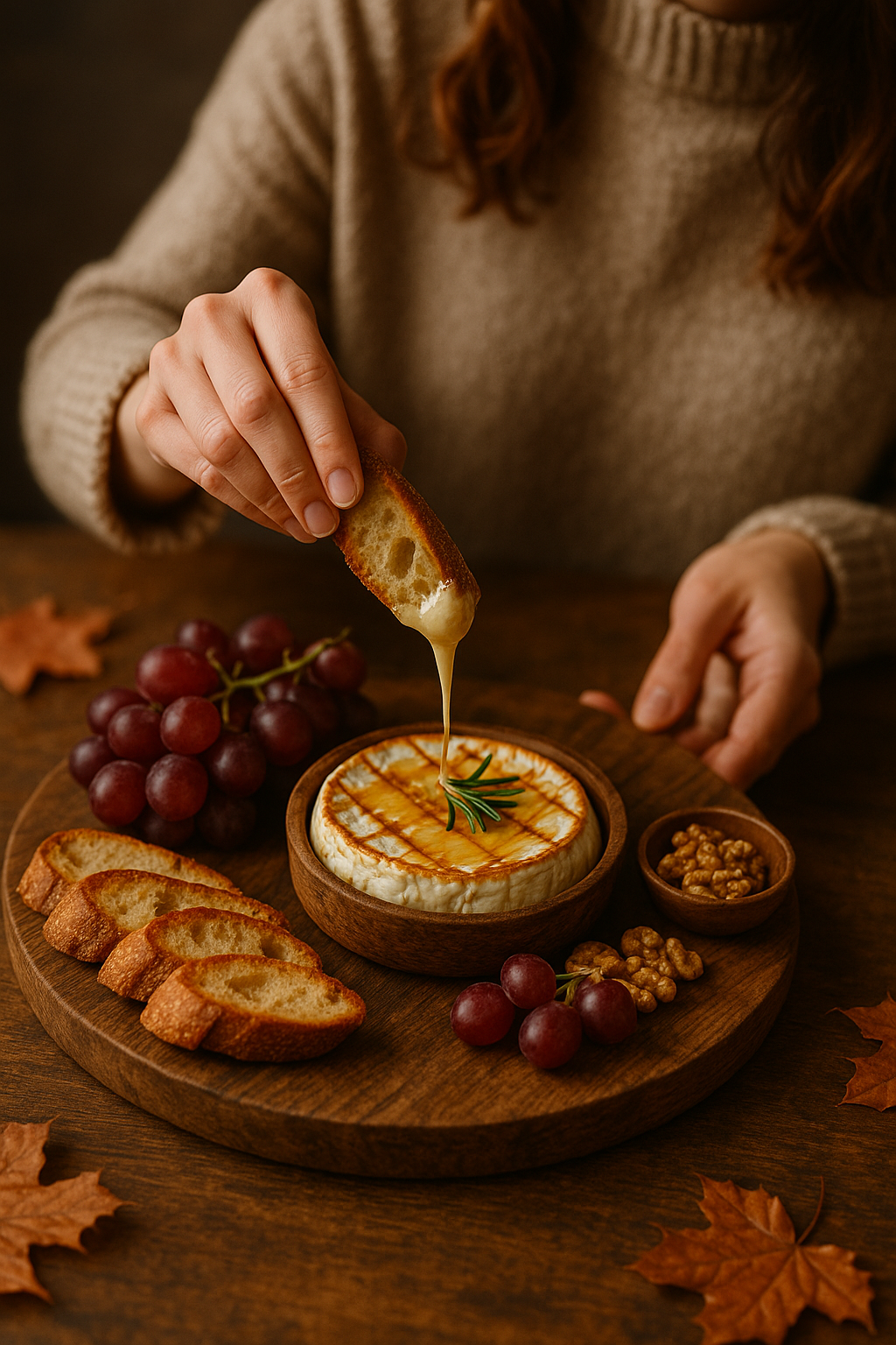 Wenn es draußen kühler wird, zieht drinnen der Duft von frisch gebackenem Brot und geschmolzenem Käse durch die Küche – ein Fest für alle Sinne! Diese herbstliche Brotzeit vereint würzigen Ofenkäse mit süßen Trauben, knackigen Nüssen und frischem Kräuterbaguette. Sie ist schnell gemacht, sättigend und bringt Wärme und Gemütlichkeit auf den Tisch.