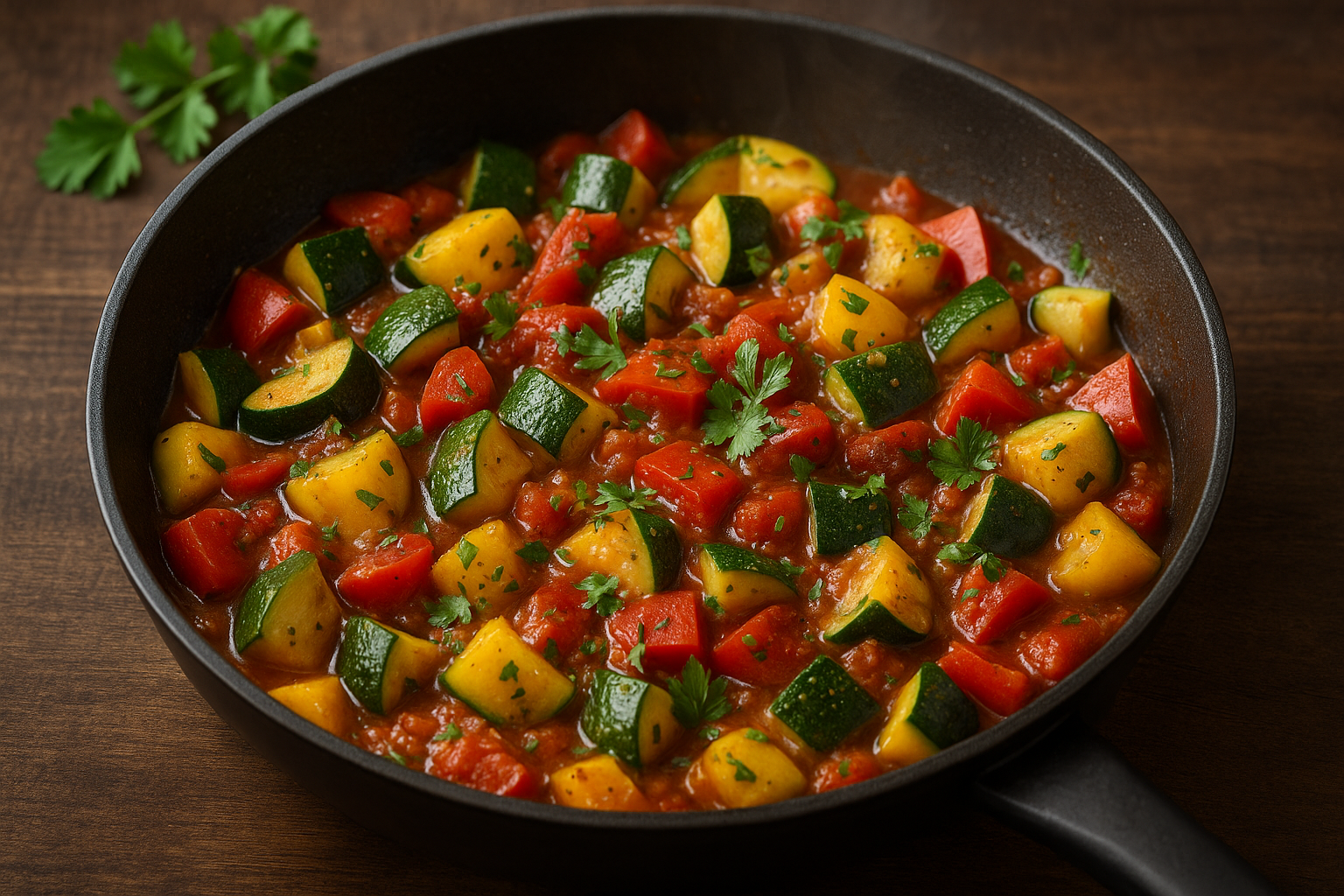 Unsere „Milde Kraft“ – mediterrane Gemüsepfanne kombiniert frisches Gemüse, Olivenöl und Kräuter zu einer leichten, aromatischen Mahlzeit, die Herz und Kreislauf guttut.