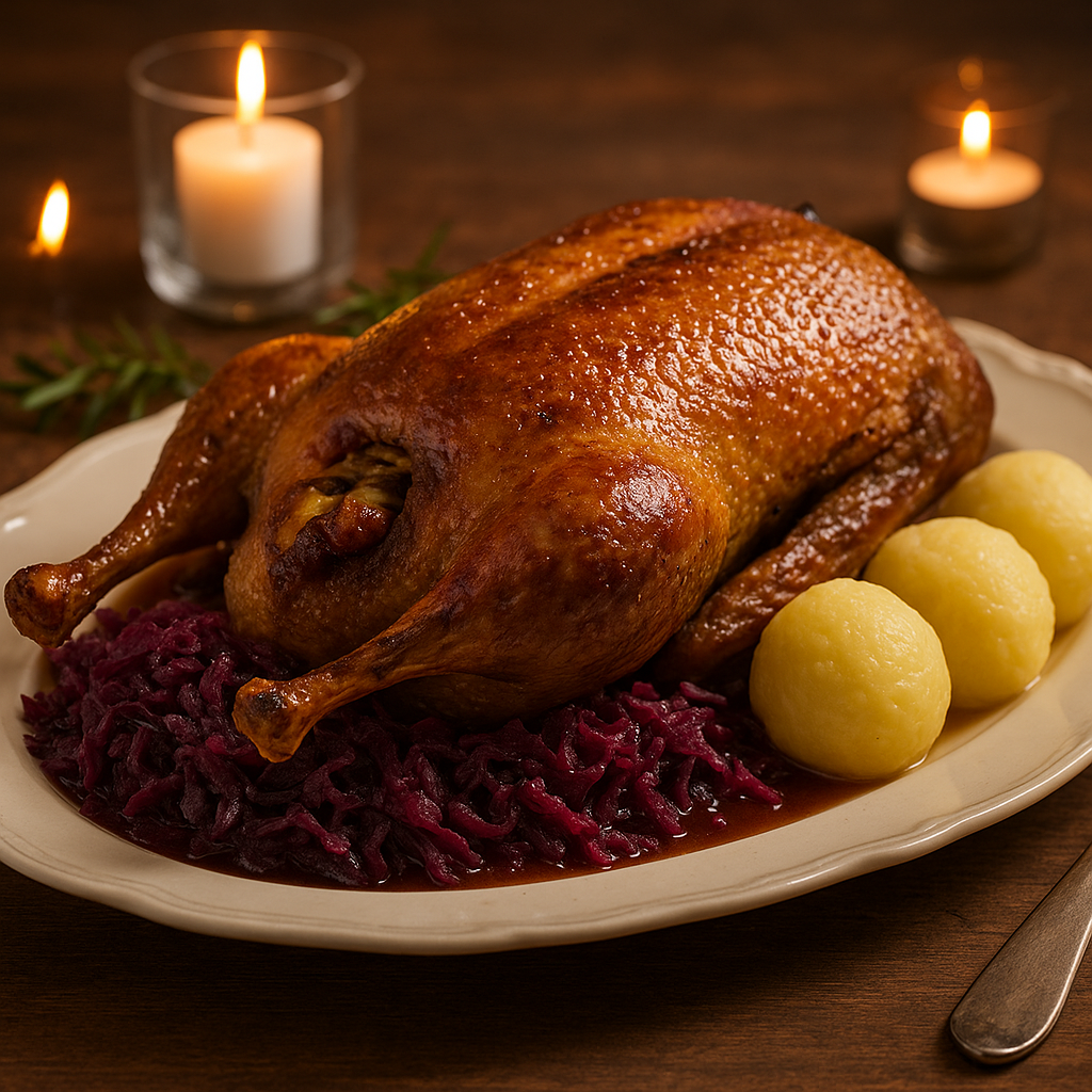 Ob für den 11. November, den ersten Advent oder ein gemütliches Sonntagsessen mit Familie und Freunden – dieses Rezept zeigt, dass traditionelle Küche nicht kompliziert sein muss. Mit etwas Geduld, guten Zutaten und einer Prise Liebe gelingt die Gans garantiert – außen knusprig, innen zart und voller herbstlicher Aromen.