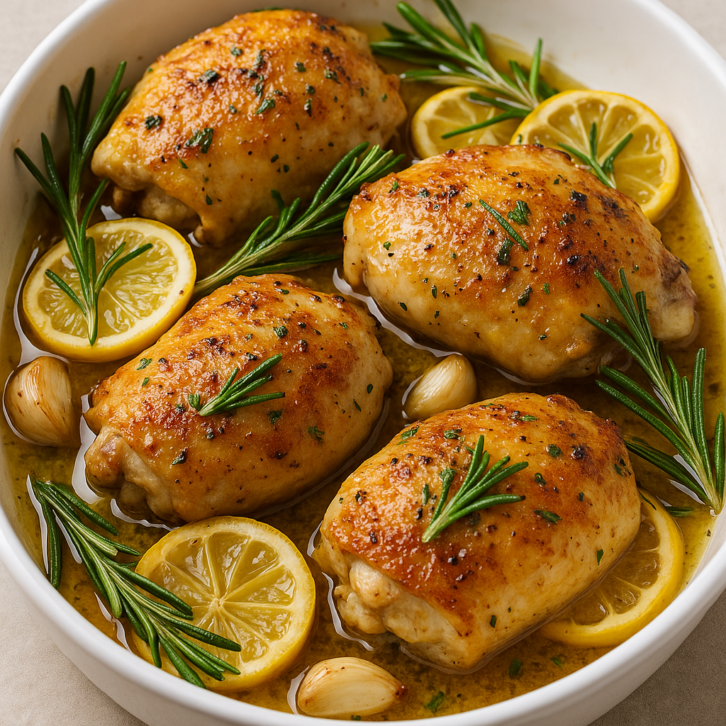 Zartes Hähnchen, das langsam im Ofen mit frischem Rosmarin, Knoblauch und Zitrone gart – ein Duft, der die ganze Küche erfüllt! Außen goldbraun, innen butterzart. Perfekt mit Salat, Baguette oder Ofenkartoffeln.