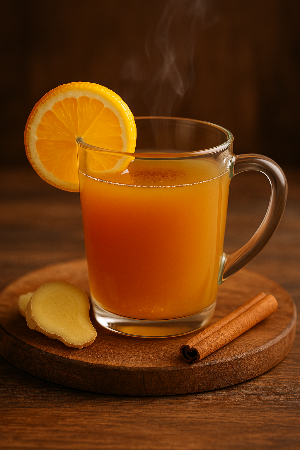 Wenn draußen die Kälte in die Knochen kriecht und der Tag lang und anstrengend war, gibt es kaum etwas Wohltuenderes als einen warmen Drink, der Körper und Geist beruhigt. Dieser Honig-Ingwer-Feierabend-Drink verbindet natürliche Wärme mit sanften Aromen: Ingwer sorgt für eine angenehme Tiefenwärme, Orange bringt Frische und Leichtigkeit, Zimt verleiht eine feine Festtagsnote und Honig rundet das Ganze harmonisch ab. Ein Drink, der sich anfühlt wie eine kleine Auszeit – ideal, um den Abend entspannt und wohlig zu beginnen.