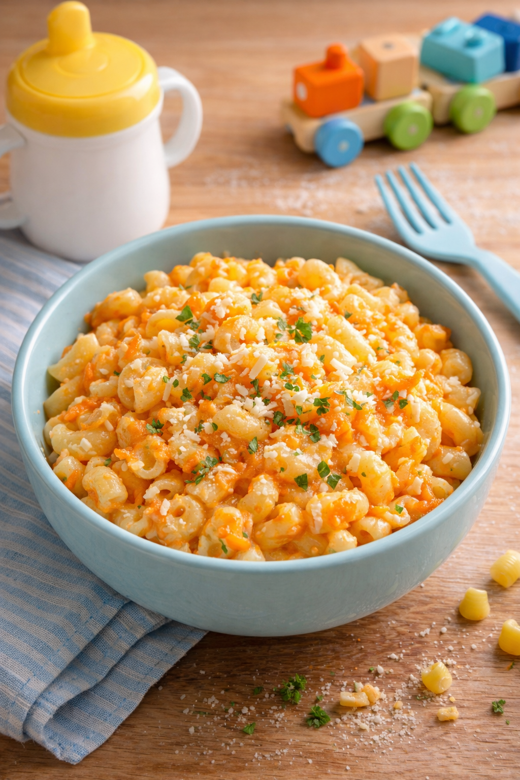 Diese Kinder-Nudelpfanne mit Karotte und Frischkäse ist cremig, mild und leicht verdaulich. Sie kommt ohne starke Gewürze aus und wird von Kindern meist sehr gut angenommen.