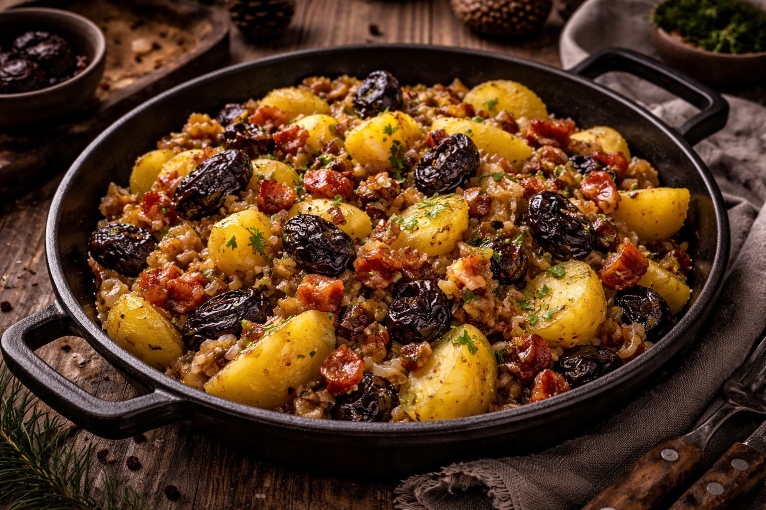 Einfach, überraschend und typisch norddeutsch: Tüften un Plum verbindet herzhafte Kartoffeln mit süß-säuerlichen Backpflaumen und würzigem Speck. Ein traditionelles Wintergericht aus Mecklenburg-Vorpommern, das ohne Festtagsglanz auskommt – aber lange satt und warm macht.
