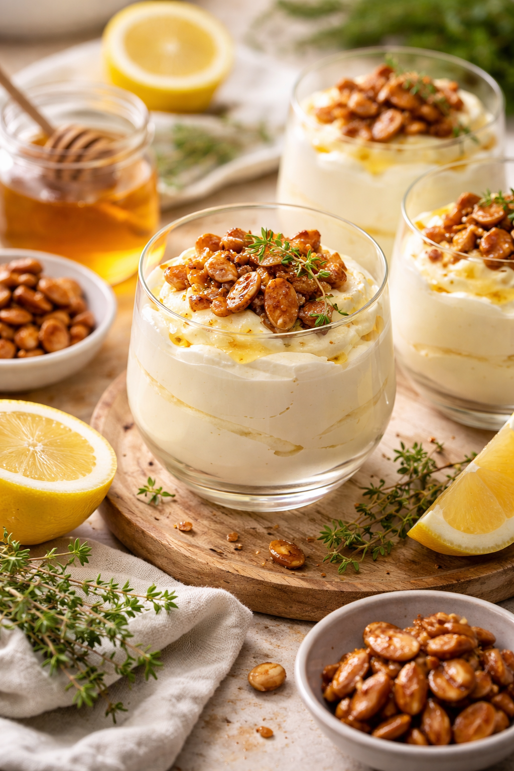 Dieses Dessert ist genau das Richtige für alle, die es elegant, frisch und nicht zu süß mögen. Die Kombination aus cremiger Mascarpone, feiner Zitronennote und einem Hauch Thymian sorgt für einen überraschenden Geschmack – erwachsen, aromatisch und perfekt für besondere Abende.