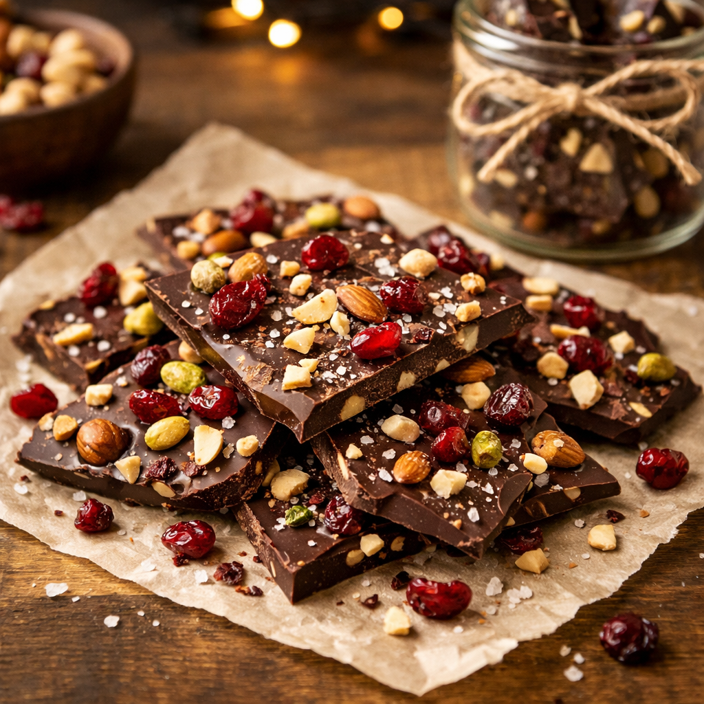 Schokoladenbruch – auch Chocolate Bark genannt – ist eines der einfachsten und zugleich wirkungsvollsten Mitbringsel. In wenigen Minuten zubereitet, individuell abwandelbar und optisch ein echter Hingucker. Perfekt als kleines Geschenk, Überraschung oder süße Aufmerksamkeit.