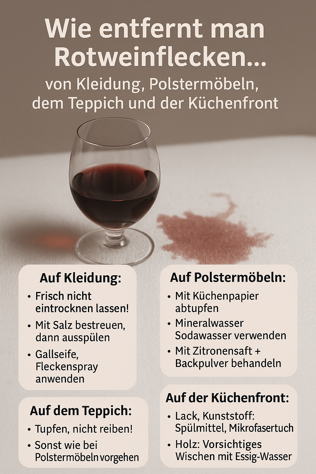 Wer kocht, kleckert – das gehört dazu. Doch Flecken auf Kleidung, Möbeln oder Küchenfronten sind keine Katastrophe, sondern lösbare Alltagsabenteuer. Mit den richtigen Tipps und Hausmitteln bekommst du Rotwein, Fett, Tomatensoße oder Kaffeeflecken ganz ohne Chemiekeule wieder weg – und bewahrst dabei den Charme deiner Traumküche.