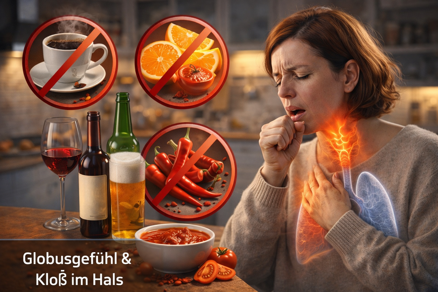 Ein ständiges Kloßgefühl im Hals, permanentes Räuspern oder das Gefühl, „da steckt etwas fest“ – und trotzdem ist medizinisch oft nichts zu finden. Das sogenannte Globusgefühl gehört zu den häufigsten, aber am wenigsten verstandenen Halsbeschwerden. Dieser Ratgeber erklärt wissenschaftlich fundiert und zugleich alltagsnah, warum diese Symptome entstehen, welche Rolle Stress, Nervensystem, Schleimhäute und stiller Reflux spielen – und warum die Küche dabei ein zentraler, oft unterschätzter Faktor ist. Mit Bezug auf medizinische Leitlinien, verständlich übersetzt für den Alltag.
