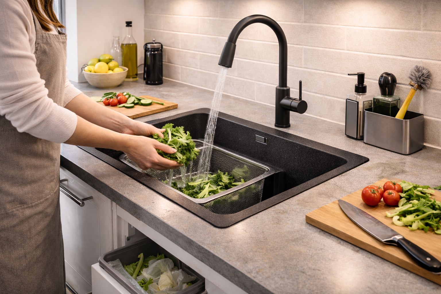 Wer eine unauffällige, langlebige Spüle bevorzugt, findet in Granit eine sehr ausgewogene Option.
