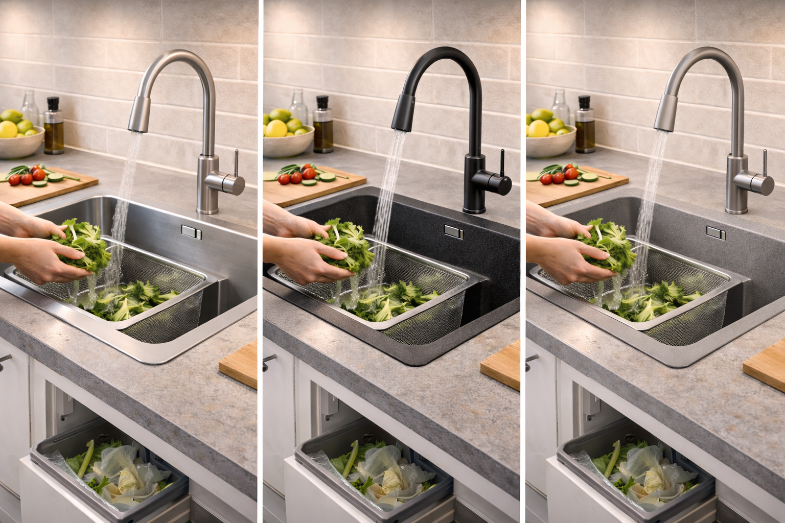 Direkter Vergleich der Spülenmaterialien