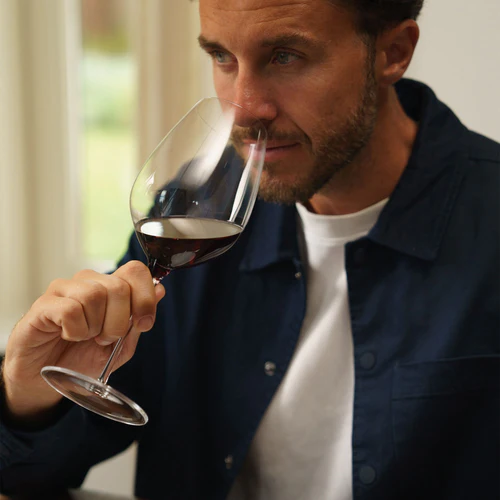 Die leicht verjüngte Öffnung bündelt die Aromen und lenkt sie gezielt zur Nase. Dadurch werden Fruchtigkeit, Struktur und sanfte Tannine besonders harmonisch wahrgenommen.