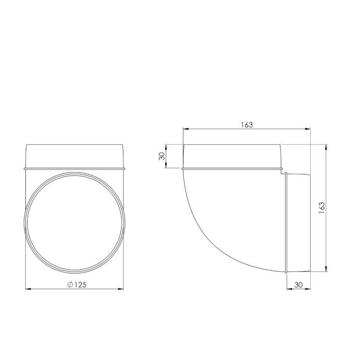 Der Rundbogen 90° Ø 125 mm dient zur horizontalen oder vertikalen Umlenkung von Rundrohren in Abluft- und Lüftungssystemen. Er ermöglicht eine saubere Richtungsänderung um 90 Grad und eignet sich besonders für Küchenabluftanlagen, bei denen der Rohrverlauf platzsparend angepasst werden muss.