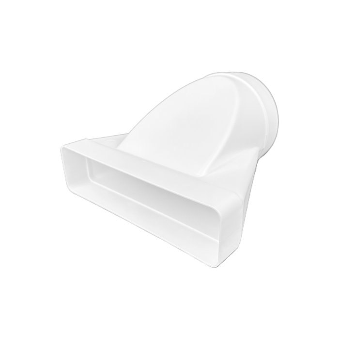 Gefertigt aus weißem Kunststoff, ist das Übergangsstück leicht, formstabil und korrosionsbeständig. Die kompakte Bauform unterstützt eine platzsparende Installation und sorgt für einen gleichmäßigen Luftstrom ohne unnötige Verwirbelungen.