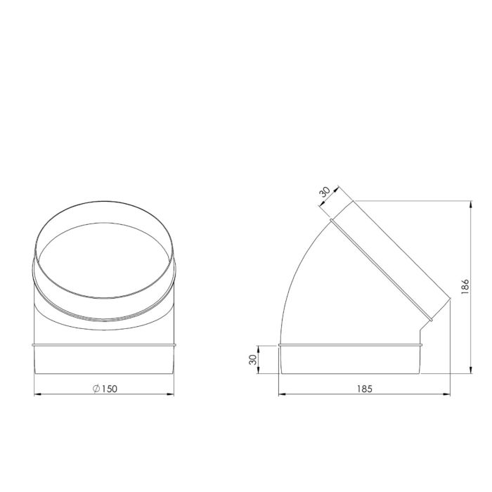 Der Rundbogen 45° mit einem Durchmesser von 150 mm ist die ideale Lösung für sanfte Richtungsänderungen in Abluft- und Lüftungssystemen. Im Vergleich zu einem 90°-Bogen sorgt der flachere Winkel für eine gleichmäßigere Luftführung und reduziert Strömungsverluste – perfekt für effiziente Dunstabzugssysteme.