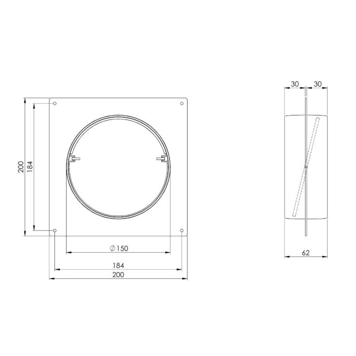 Mit seinen kompakten Maßen von 62 x 200 x 200 mm eignet sich der Wandanschluss sowohl für sichtbare Installationen als auch für dezente Lösungen hinter Möbeln oder Verkleidungen.