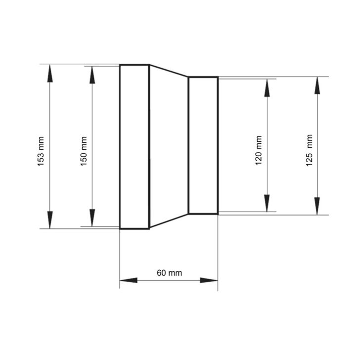 - Anschluss: Ø 150 mm auf Ø 125 mm