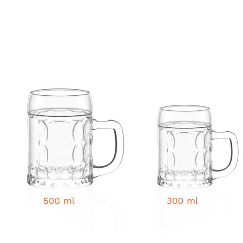 Die vergrößerte Dekorfläche verleiht dem Krug eine kraftvolle, elegante Optik. Der massive Glasboden sorgt für Standfestigkeit, während die integrierte Daumenauflage am Henkel einen besonders sicheren und komfortablen Griff ermöglicht. Die Glasform unterstützt eine stabile Schaumbildung und einen ausgewogenen Biergenuss.