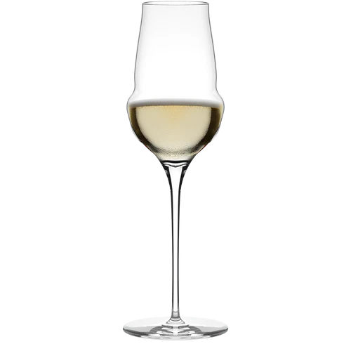 Die schmale Glasöffnung unterstützt den Erhalt der Kohlensäure und bündelt das Bouquet. So bleiben Frische und Aromatik länger erhalten. Der elegante, gezogene Stiel sorgt für eine ausgewogene Balance und verhindert eine zu schnelle Erwärmung des Getränks durch Handkontakt.