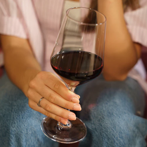 Der leicht gedrehte Kelch unterstützt die kontrollierte Belüftung und sorgt für eine harmonische Einbindung kräftiger Tannine. Der elegant gezogene Stiel gewährleistet Balance und eine angenehme Haptik.