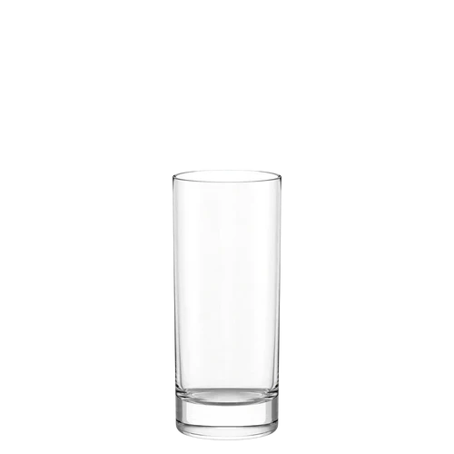 Die klare, zylindrische Form mit geraden Linien verleiht dem Glas eine moderne Lounge-Atmosphäre. Der massive Glasboden sorgt für hohe Standfestigkeit und ein angenehm ausbalanciertes Gewicht – perfekt für Cafés, Bars oder lockere Serviersituationen.