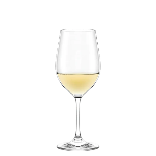 Die leicht bauchige Kelchform unterstützt die optimale Entfaltung der Aromen, während die sanfte Verjüngung am Glasrand die Frische und Lebendigkeit des Weins bewahrt.