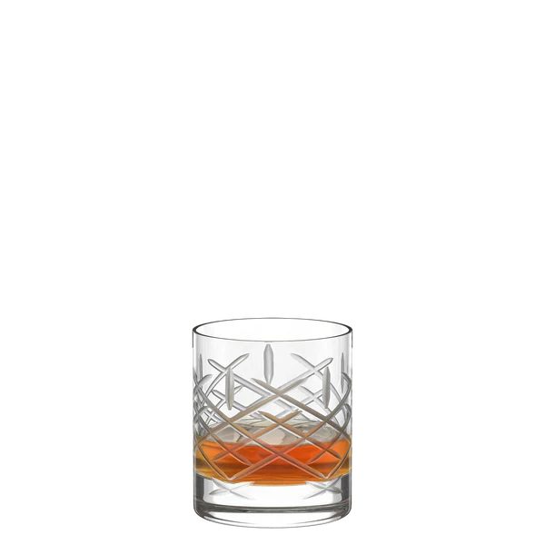 Der markante crossed Schliff verleiht dem Glas eine elegante Struktur und eine moderne, bartaugliche Optik. Der massive Boden sorgt für hohe Standfestigkeit und unterstreicht den hochwertigen, professionellen Charakter des Glases – ideal für Bars, Lounges und anspruchsvolle Hausbars.