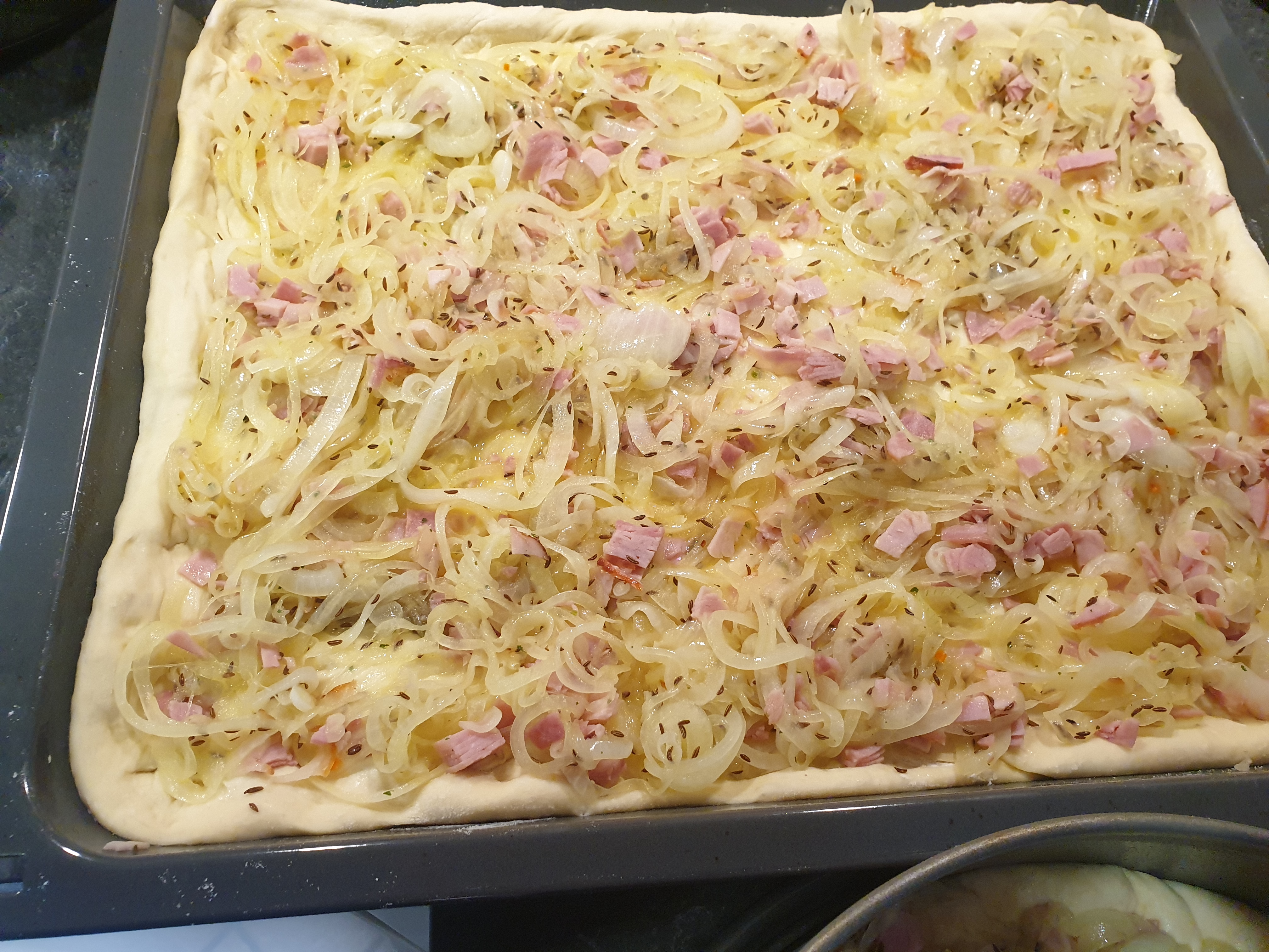 Zwiebelkuchen für ein Ofenblech